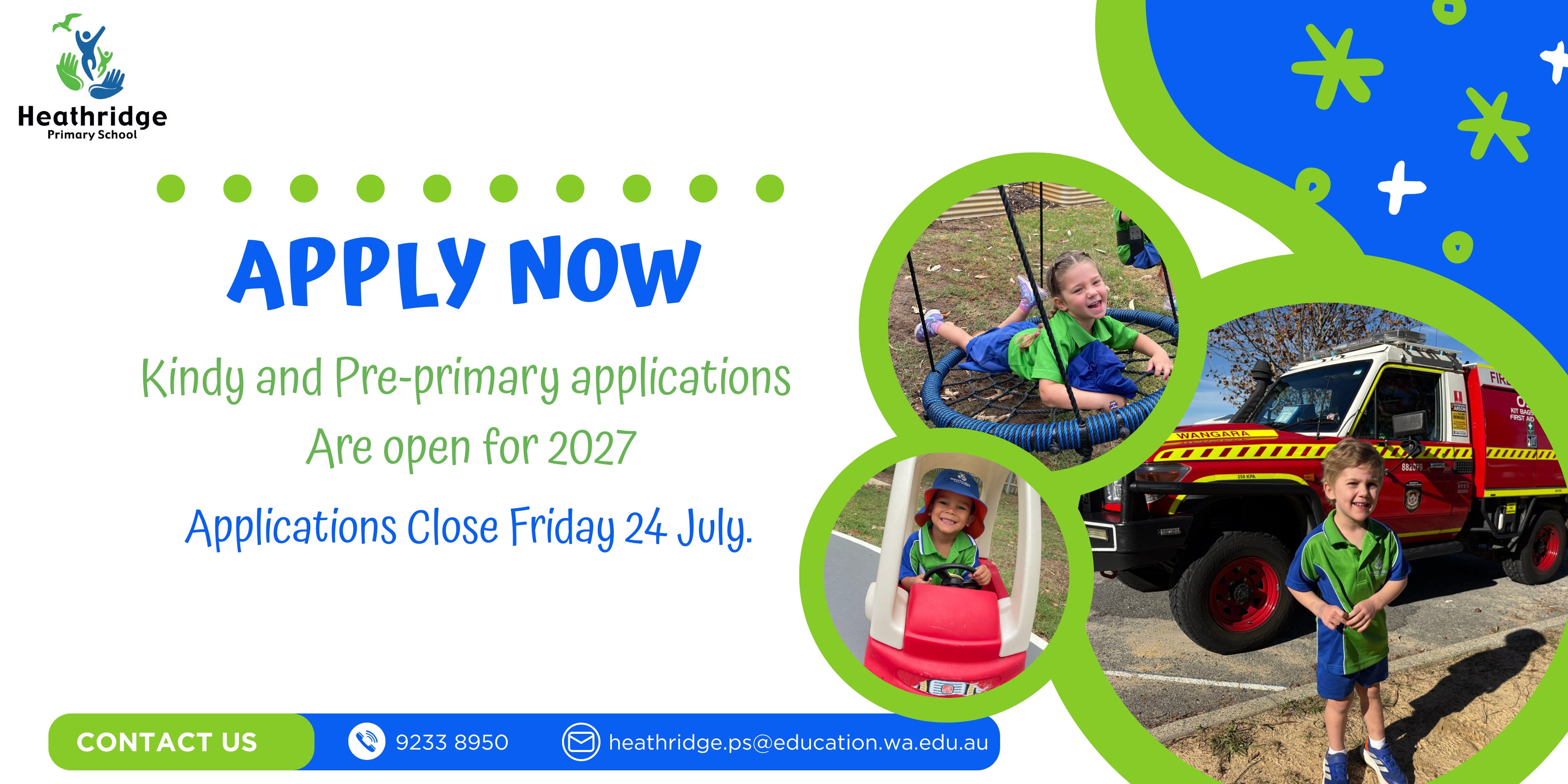 Completed enrolment forms may be emailed to heathridge.ps@education.wa.edu.au